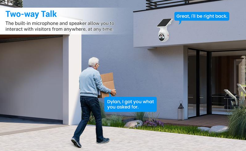 🎤 Two-Way Audio – Speak and listen through your camera from anywhere.